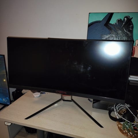 34 tuumainen laajakuva. Ok kunto. Muutama kuollut pikseli, ei itseäni paljoa häirinnyt. Ei laatikkoa. Pelkkä nouto.