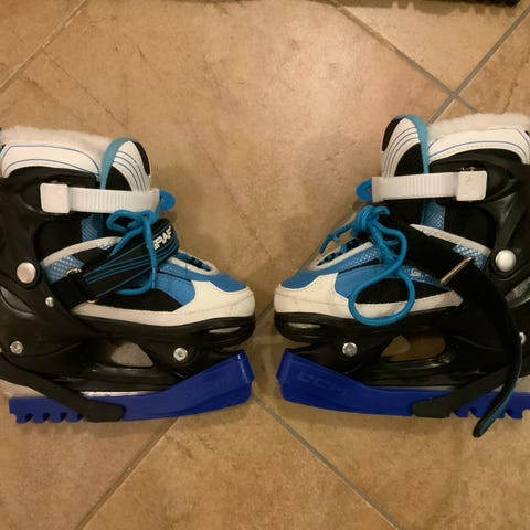 Uutena ostettu, yhdellä lapsella käytössä olleet luistimet, ovat hyväkuntoiset. Helppo kiristys, kokoa voi muuttaa lapsen jalan kasvaessa.