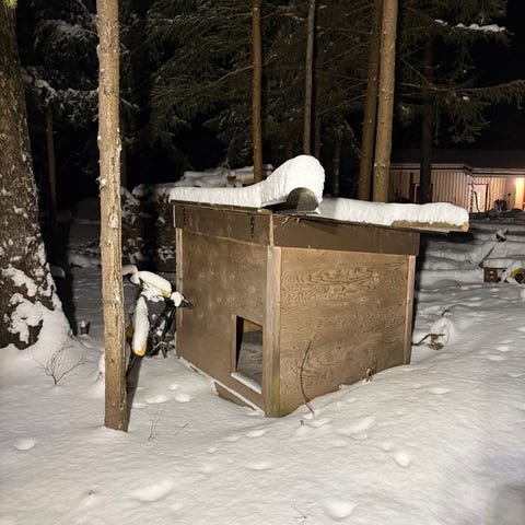 Etsinnässä kahdelle Corgille koppi ulkotarhaan