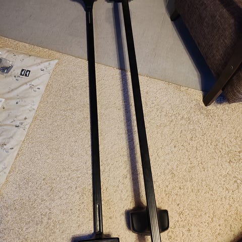 Säädettävä kiinnitys=80-97 cm leveä, kattokaiteeseen. Mukana avain. Ollut Ford Modeo kattokaiteissa (vm 2005).