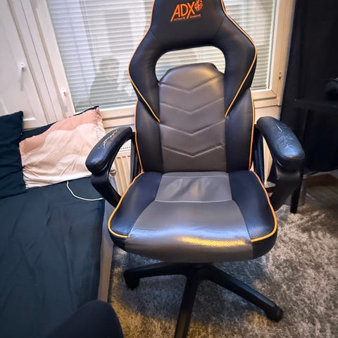 Myyn pelituoli. Ostettu 25.09.2025 (takuu 2 vuotta ostopäivästä). Käytetty enintään 3 viikkoa. Jalkaristikon jokaisen pyörän kohdalta on maali kulunut pois, mutta se ei haittaa käyttöä. Kuitti löytyy.