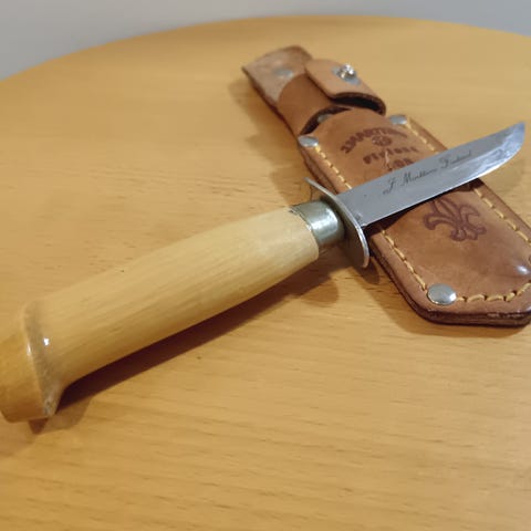 Tarjolla on Emhart sienipuukko. Se on täysin käyttämätön ja sen mukana tulee oma kotelo, jonka saa vyöhön kiinni.