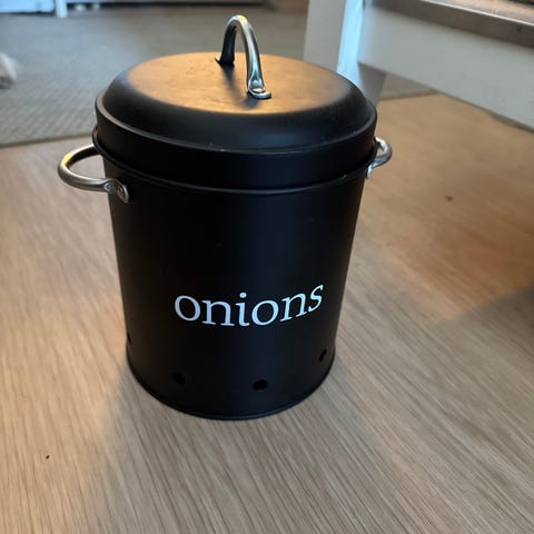 Keraaminen Sipulin säilytysastia puisella kannella. Ehjä ja hyvässä kunnossa