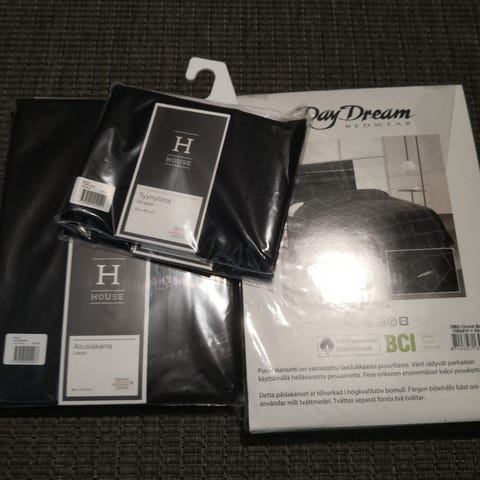 Tyynyliinojen sivuissa 5cm helmat. Väri on ruskea ja luonnonvalkoinen. Napit löytyy pussilakanasta.