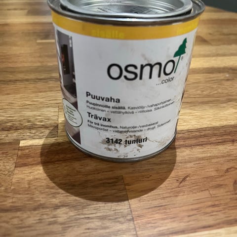 Myydään melkein täysi puuvahapurkki. Väriltään keltainen.