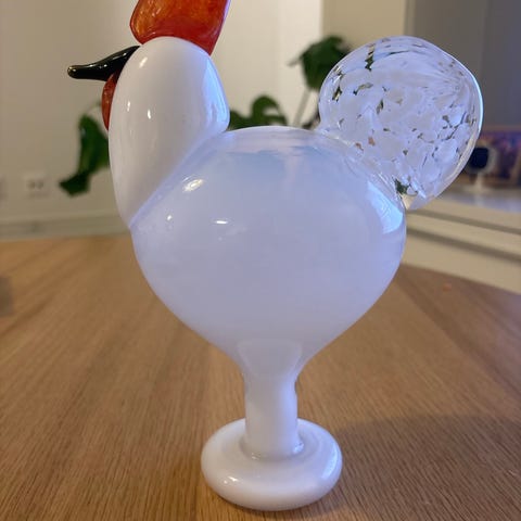 Vitriinissä säilytetty uudenveroinen pajusotka, korkeus n7cm ja pituus pyrstöstä nokkaan 14-15cm. Signeerattu, Iittala tarra paikoillaan