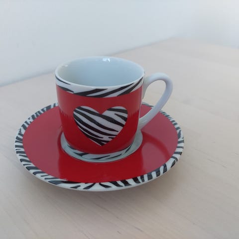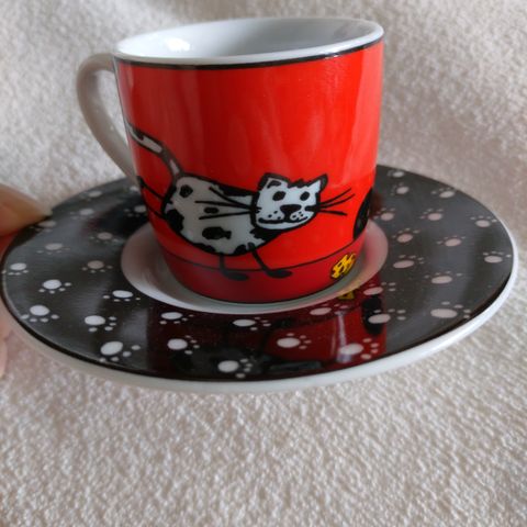 Tämä Konitz-espressosetti on ainutlaatuinen lisä astiastollesi. Settiä koristelee valloittava lehmäkuvio, joka tuo ripauksen leikkisyyttä kattaukseesi.
