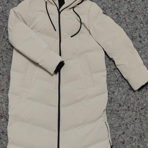 Kuin uusi, musta muhkea ja lämmin Zaran toppataki koko xs väri musta, kivat kultaiset napit ja vetoketju. Koko oli minulle liian pieni, käytetty pari kertaa. Pituus polviin asti, olen 165cm pitkä.