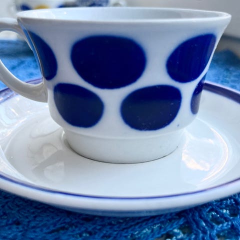 Arabia kahvikupit ja asetit sininen keltainen turkoosi keramiikka