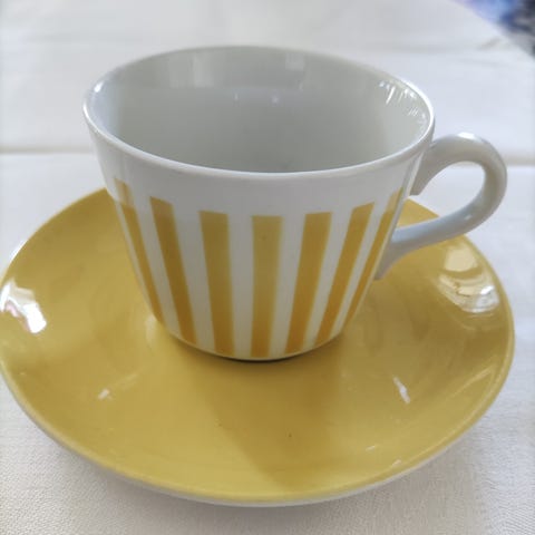 Arabia kahvikuppi+lautanen puhalluskuviolla. Kuvion nimi Aita. Hyväkuntoinen käytetty. Pintanaarmua erityisesti lautasessa. Samaa sarjaa löytyy tarvittaessa myös toinen kuppipari. Hinta 18€/ kuppi + lautanen.