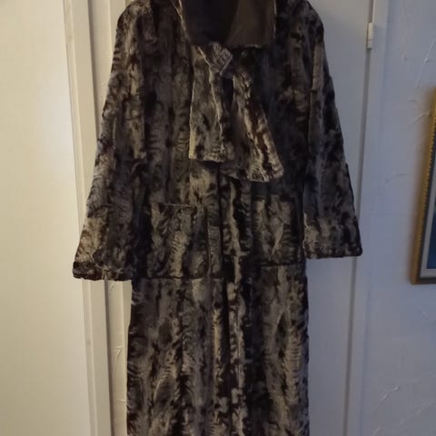Myydään erittäin hyväkuntoinen pitkä aito turkistakki. Väri musta, jossa ruskeaa vivahdetta. Väriä on vaikea saada kuvaan, mutta turkis näyttää tumman ruskealta.