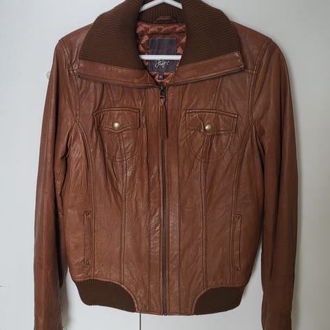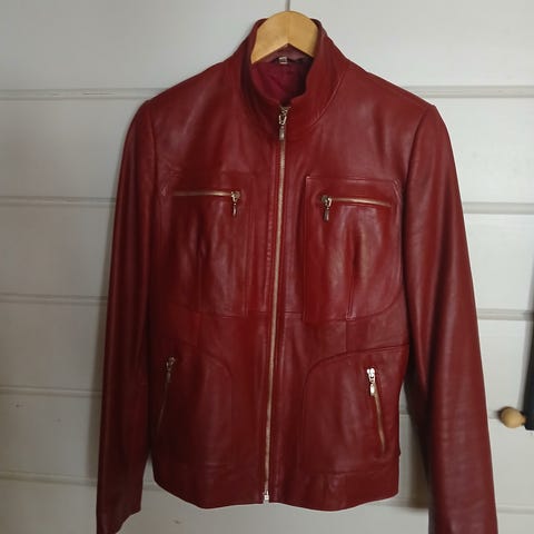 Myydään ryhdikäs jakku-mallinen naisten nahkatakki. Koko 40. Siisti ja hyväkuntoinen vuorillinen takki.