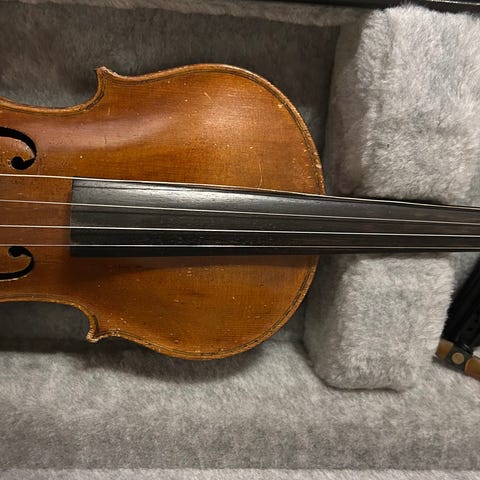 Hyvinsoiva ja täydessä soittokunnossa oleva ehjä vanha saksalainen 4/4 -viulu. Eebenpuisessa otelaudassa kaunis syykuvio. Viulu on ollut soitossa (ainakin) viimeiset 10 vuotta, joten vastaa soittajan pyyntöön nöyrästi. Mukaan saa hyväjouhisen jousen, jos tarvitsee.