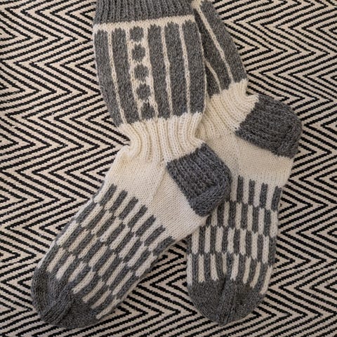 Nalle langasta käsin neulotut kuviosukat, koko 38-39. Oranssit valkoisella kuviolla.