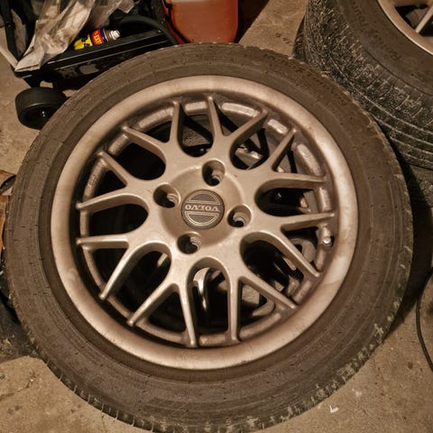 Siistit ja hyväkuntoiset vanteet ja renkaat koko 225/45/17 olleet Volvo 940 alla