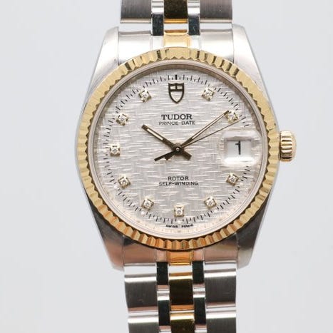 // HUOMAUTUS TARJOAJALLE //Huomioithan, että tämä on räätälöity kello, mikä tarkoittaa, että siinä voi olla osia, jotka poikkeavat alkuperäisistä tehdasmäärityksistä. Räätälöinti voi vaihdella suuresti, joten korostamme seuraavia mahdollisuuksia täydellisen läpinäkyvyyden vuoksi:- Jälkimarkkinaosat -Kellossa voi olla kolmannen osapuolen komponentteja (kuten kehyksiä, kellotauluja, käsiä, kristalleja tai jalokiviasetuksia), joita ei ole valmistajan tuotantoa. Näitä osia lisätään usein esteettisistä syistä, mutta valmistaja ei pidä niitä alkuperäisinä.- Alkuperäisiä osia muista malleista -Joitakin osia (esim. kellotauluja tai rannekkeita) on saatettu hankkia muista aidoista kelloista samalla merkiltä. Vaikka nämä osat ovat aitoja, ne eivät alun perin ole olleet tämän tietyn mallin tai viitteen osia, mikä saattaa vaikuttaa keräilyarvoon tai oikeuteen saada valmistajan huoltopalvelua.- Ei-alkuperäisosat -Joissakin tapauksissa räätälöidyt kellot voivat sisältää osia, jotka eivät ole alkuperäisiä tai valmistettu brändin toimesta. Nämä osat voivat vaikuttaa kellon arvoon. Pyydämme myyjiä mainitsemaan tällaiset elementit selkeästi kohteen kuvauksessa. Kannustamme kaikkia tarjoajia tarkastelemaan huolellisesti kuvia ja kuvausta ennen tarjouksen jättämistä.Mukautuskellot eivät välttämättä ole oikeutettuja merkin viralliseen huoltoon tai takuuseen. Kaikki tarjoukset tulee tehdä täysin tietoisina kuvatusta räätälöinnin tilasta.=========================================================================Malli: Tudor Prince Date 74033 kahdella sävyllä kultainen pellavakuvioitu kellotaulu automaattinen urheilukelloAlkuperä: SveitsiRuostumaton teräsCirca: jälkeen 2000Kellon vihjeväri: kultainen pellava-tekstuurilla, timanttisäädöt.Kotelon koko: 34 mm (ilman kruunua)Soveltuu jopa 18,5 cm ranteeseen. Ei ylimääräisiä linkkejä.Koneisto: Tudor (ETA) 2824-2 automaattinen koneistoVirrankesto: noin 38 tuntiaToiminnot: Ajan seuranta, automaattinen ja manuaalinen viritys, liukuvat osoittimet, päivämäärän näyttö, ruuvilukittava kruunu.**Tämän kellon vesitiiviyttä ei ole tarkistettu. Se ei ole suositeltava uinnille tai sukellukselle. Käytä varovaisuutta, kun pidät kelloa veden lähellä.**—// TOIMITUKSEN SISÄLLÖT //—Ei [jälkimarkkinoinnin oranssia laatikkoa, kuten kuvissa näytetään].Alkuperäiset asiakirjat: Ei—// EHDOT //—Kuluma tapauksessa | ALKUPERÄINEN | : Merkityksetön / Vähäinen (joitakin vähäisiä kulumia tapauksessa sivuilla, kevyitä hiustenhalkioita ja pieniä naarmuja)Kulumaa takakannessa | ORIGINAL | : Pieniä *(kaiverruksella "TUDOR / PRINCE / GENEVA"). Hiusviivoja ja kevyitä naarmujaKulumisjäljet Crystalissä | UNDETERMINED | : Vähäistä *(lähes virheetön. Pieni karheus reunan ympärillä. Pieni likaantuminen cyclopsin ympärillä)Kellotaulun kulumaa | ALKUPERÄINEN | : Ei ("SWISS MADE" tulostettu 6:n kohdan kohdalle, kaikki luminoivat pisteet ehjät. Painatukset erinomaisessa kunnossa.)Käytön jälki käsissä | ORIGINAL | : Ei mitään (hehkuvat materiaalit ovat ehjät)Käytön jälki kehys | JÄLKIHOITO | : Merkityksetön (jälkihoidettu kultapinnoitettu metallikehys)Käytön merkki kruunussa | ORIGINAL | : Pieni/mitätön (alkuperäinen Tudor-kruunu kilpi-logolla. ruuvikiinnitys toimii OK noin 1,5 kierrosta)Rannekkeen kuluminen | JÄLKIHOITO | : Ei mitään *(Metalliranneke, kultauksella)Kuluminen päissä | JÄLKIMARKKINAT | : EiKulumaa soljessa | ORIG
