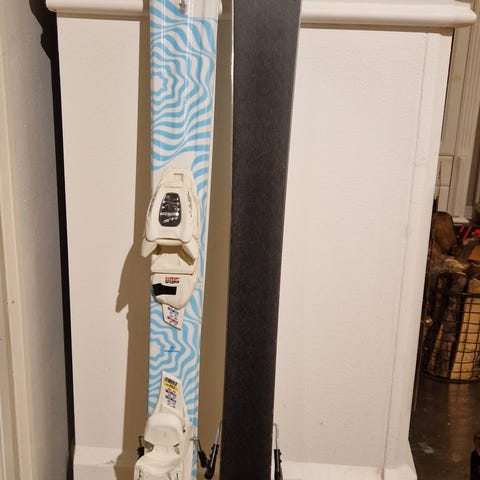 Volkl Chica laskettelusukset, pituus 130 cm, väri valkoinen. Suksissa on kiinnikkeet, jotka on kuvissa näkyvissä. Sopivat lasketteluun erilaisissa olosuhteissa.