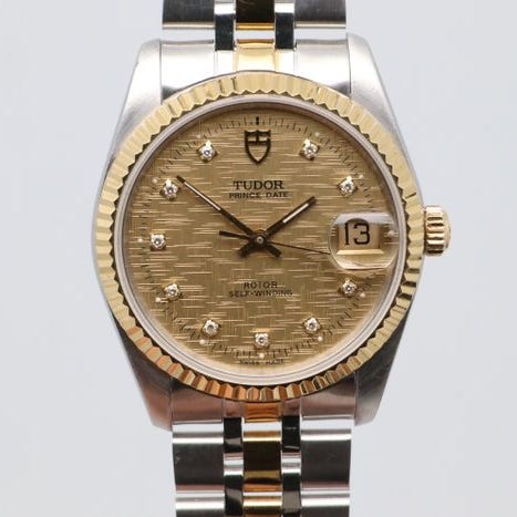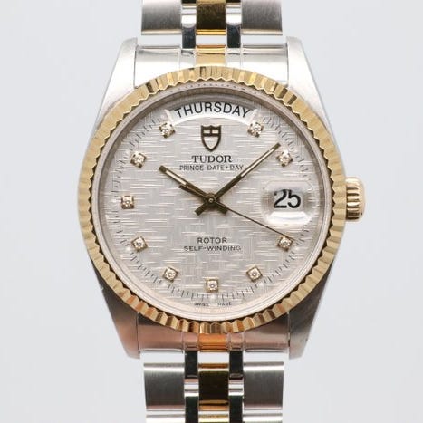 // HUOMAUTUS TARJOAJALLE //Kun kelloon on asennettu jälkimarkkinoiden osia tai toisen valmistajan alkuperäisosia, kelloa pidetään kustomoituna kellona. Tämä tarkoittaa, että kello voi sisältää komponentteja, jotka poikkeavat alkuperäisistä tehtaan osista. Kustomointi voi vaihdella suuresti, joten korostamme seuraavia mahdollisuuksia täyden läpinäkyvyyden takaamiseksi:- Jälkimarkkinaosat -Kellossa voi olla kolmannen osapuolen komponentteja (esim. kehykset, kellotaulu, viisarit, kristallit, ranneke ja jalokivien kiinnitykset), jotka eivät ole tuotemerkin omistajan valmistamia. Nämä osat lisätään usein esteettisistä syistä, mutta valmistaja ei pidä niitä alkuperäisinä.- Alkuperäisiä osia muista malleista -Joitakin osia (esim. kellotauluja tai rannekkeita) on saatettu hankkia muista aidoista kelloista samalla merkiltä. Vaikka nämä osat ovat aitoja, ne eivät alun perin ole olleet tämän tietyn mallin tai viitteen osia, mikä saattaa vaikuttaa keräilyarvoon tai oikeuteen saada valmistajan huoltopalvelua.- Ei-alkuperäisosat -Joissakin tapauksissa räätälöidyt kellot voivat sisältää osia, jotka eivät ole alkuperäisiä eivätkä merkin valmistamia. Nämä komponentit voivat vaikuttaa kellon arvoon.Mukautuskellot eivät välttämättä ole oikeutettuja merkin viralliseen huoltoon tai takuuseen. Kaikki tarjoukset tulee tehdä täysin tietoisina kuvatusta räätälöinnin tilasta.Model: Tudor Prince Oysterdate 72033 kaksivärinen kultainen pellavainen kellotaulu automaattinen urheilukello.Alkuperä: SveitsiRuostumaton teräsKellotaulun väri: kultainen liinakangon tekstuurillaKotelon koko: 32 mm (ilman kruunua)Soveltuvuus: sopii enintään 16,5 cm:n ranteeseen.Koneisto: Tudor (ETA) 2824-2 automaattinen koneistoVirrankesto: noin 38 tuntiaToiminnot: Ajan seuranta, automaattinen ja manuaalinen viritys, liukuvat osoittimet, päivämäärän näyttö, ruuvilukittava kruunu.** Tämän kellon vedenpitävyyttä ei ole testattu. Ei suositella uimiseen tai sukellukseen.**—// TOIMITUKSEN SISÄLLÖT //—EiAlkuperäiset asiakirjat: Ei—// EHDOT //—Käytön jälkiä kotelossa | ORIGINAL | : Pienet (joitakin kevyitä hiusnaarmuja ja kevyitä naarmuja)Käytön jälkiä takakannessa | ALKUPERÄINEN | : Pieni (kevyt naarmut ja hiusviivat)Kuluminen kristallissa | PÄÄTTÄMÄTÖN | : Merkityksetön (Safirikide. Reunan ympärillä minimaalinen karheus)Näytön kuluminen | ALKUperäinen | : Ei mitään / Merkityksetöntä („SWISS MADE“ painettu 6:n jaoston alapuolella, kaikki luminesoivat pisteet ovat ehjiä. Tulostus erinomaisessa kunnossa)Kulumaa käsissä | ALKUPERÄINEN | : Ei mitäänKulumaa kehyksen JÄLKIMARKKINOILLA | : Vähäistä (Jälkimarkkinoilla valmistettu metallinen kehys kullattuna)Kruunun kulumaa | ORIGINAL | : Pienet (Alkuperäinen kruunu kilpilogolla. Kiristyksen toiminta OK 1,5 kierroksella. Pienet kulumajäljet, hiusviivoja ja kevyeitä naarmuja)Käytön jäljet hihnoissa | JÄLKIOSAT | : Ei mitään *(Jälkimarkkinoilta tulevat nahkahihnat, joissa on metallinen solki)KUNTOARVIOINNIN STANDARDI:Ei mitään (Paras) > Merkityksetön > Pieni > Keskitaso > Raskas > Vaurioitunut (Huonoin)— // TIMEGRAPHER PERFORMANCE //—Arvio: -3 sekuntia päivässä.(näytetään +/- sekuntia päivässä, mikä osoittaa ajan, jonka laite saavuttaa tai menettää päivässä)Amp: 271 astetta(oskillaattorin pyörimiskulma, joka osoittaa käyntitehoreservipiipusta oskillaattoriin siirtyvän tehon, ja lukemat 200–30