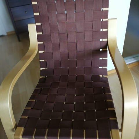 Myydään hyväkuntoinen Artekin nojatuoli. Suunnittelija Hellevi Ojanen. Verhoiltu uudelleen v2021.