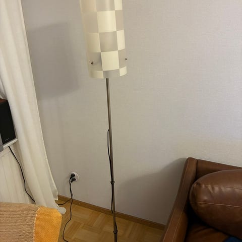 Myydään jalkalamppu mustalla varjostimella.