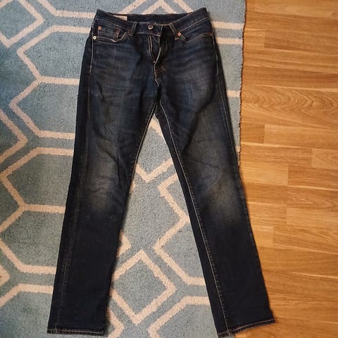 Tässä se alkuperäinen klassikko eli Leviksen 501 malliset suorat farkut. Ei mitään kapenevaa istuvuutta vaan ihan suorat jalat perinteisen tyylin omaavalle herrasmiehelle. Kautta aikojen kokeiltu ja testattu miesten muodin työhevonen, joiden aikaisempi omistaja on niistä kuitenkin ulos lihonnut. Vyötärö on tosiaan se 29 niin istuu paremmin ohuemman puoleiselle isännälle. Tarjoa!