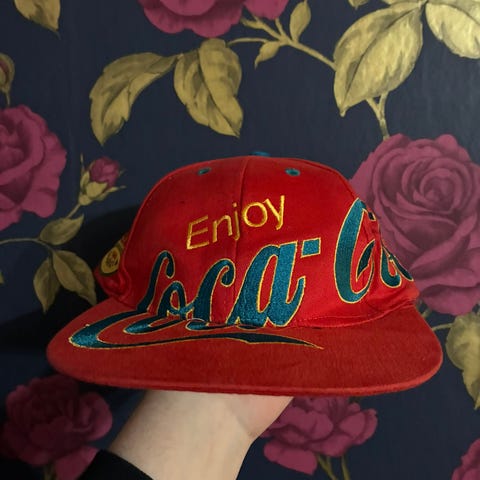 Microsoft Windows 95 lippis. Säädettävä. Lipassa ulkopuolella haalea tahra. Sisäpuolella hiukan meikkivoidetahraa ja lipassa tahra, jotka eivät näy ulospäin. Muuten en huomaa vikoja.