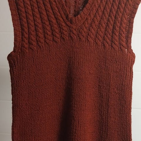 Siisti, kudottu lämmin slipoveri, joustavaa neuletta. Kainalo-kainalo mitta n. 50 cm, niska-helma n. 72 cm. Kotimaista käsityötä.