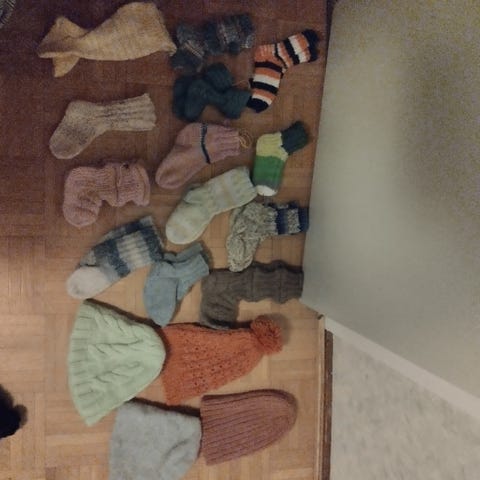 Kaikki käsinkudottuja, vuori muissa lakeissa paitsi valkoisessa [joka ensimmäisessä kuvassa vasemmalla]