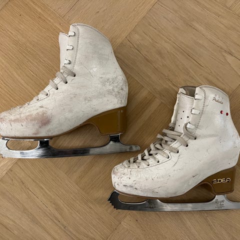 Terät hyvässä kunnossa ja teroitettu taitoluisteluun tarkoitettuun U-muotoiseen teräprofiiliin.