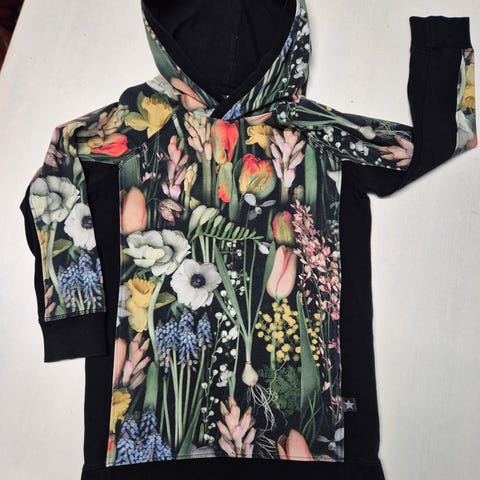 Molo kukkatunika koko 110-116. Kukkakankaan mustassa pohjassa hentoa haitua.