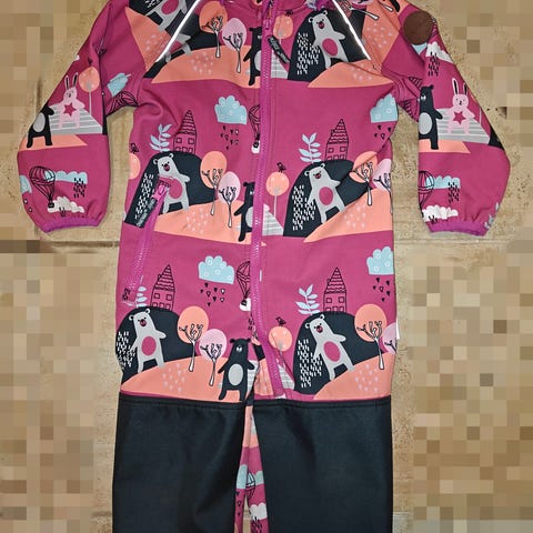 Softshell välikausihaalari koossa 98. Edessä heijastava teksti, takalahkeissa tähdet. Pesty käytön jälkeen hajusteettomasti. Yhden lapsen käyttämä, moitteita en löytänyt. Hyvä siisti kunto.