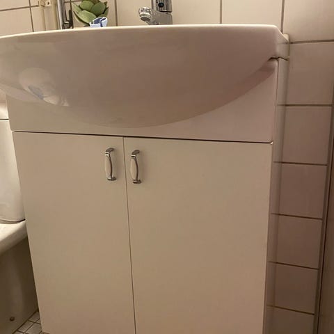 Allaskaappi valkoinen, jossa kaksi ovea. Sopii kylpyhuoneen säilytykseen ja allaskaappiratkaisuksi. Koko lev. 60 x kork. 70.