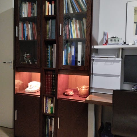 Ensimmäisessä kuvassa on malli ovista, jollaisia etsin. Toisessa kuvassa on hylly, johon ovet tulevat.