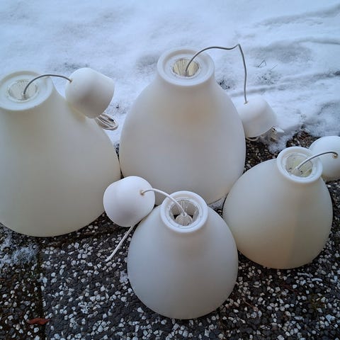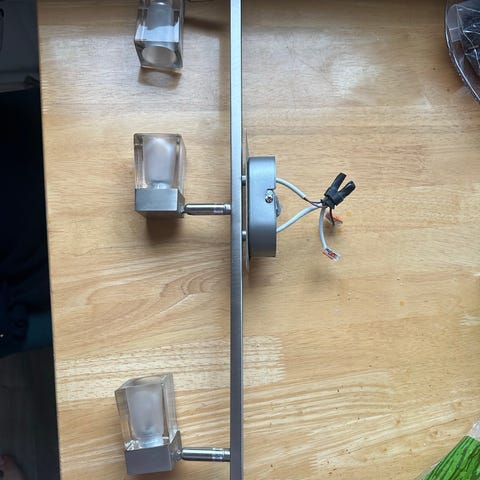 Joskus taannoin prismasta ostettu valaisin kolmella lampulla. Tällä hetken kiinni 12v e14 kannalla olevan lamput ja ne saa kaupan päällisiksi mukaan.