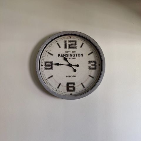 Musta iso seinäkello, halkaisija 92 cm. Joskus sisustusmessuilta ostettu ja maksoi n. 150 euroa.