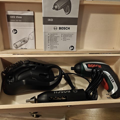 Bosch IXO akkuruuvinväännin, mukana laturi, akku ja ohjekirja. Työkalu soveltuu ruuvien kiinnittämiseen ja irrottamiseen erilaisissa kotitalous- ja pienissä korjaustöissä.