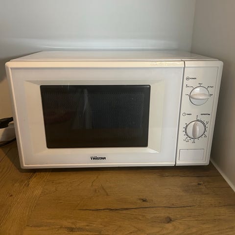 Hyväkuntoinen valkoinen UPO mikroaaltouuni.