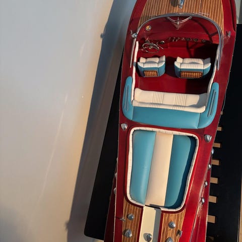 Kaunis uudehko Rivan pienoismalli seestri puusta. Mitat 87cm×26cm. Paino 3kg plus