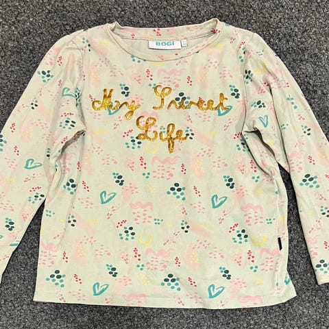 Pyjamasetissä on pitkähihainen paita ja pitkälahkeiset housut.