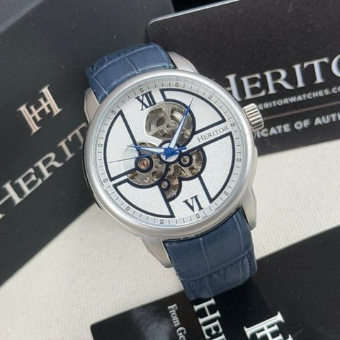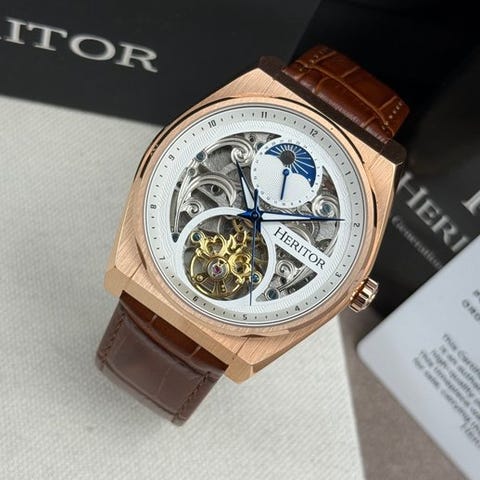 Upea Heritorin Davenport-sarjan miestenkello. Viitenumero HERHS3203. Kello toimii automaattisen koneiston avulla, joka näkyy kellon takapuolella. Kellossa on myös pehmustemäinen kotelo, jossa on huomattavia korostuksia kulmissa. Kello on helposti luettavissa kontrastin ansiosta taustan ja värillisten indeksien ja korostusten välillä.Uusi ja käyttämätön!Kello lepää mukavalla nahkaisella kellonrannekkeella.Toimitetaan mukana näytetty laatikko.Kello: automaattinenmateriaali kast: kullattu (teräs)Halkaisija: noin 45 mm ilman kruunua.Hihnan pituus: noin 20 cm, mukaan lukien kello.Ikä: 2024Lähetetään vakuutettuna.Valokuvien ottaminen on osa kuvausta.