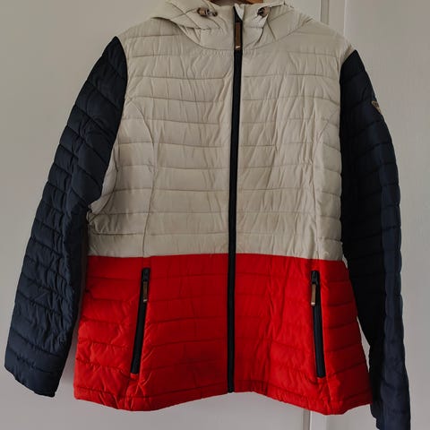 Koko 46, kainalo-kainalo mitta 60 cm. Tästä ihanan kevyen tuntuinen, mutta lämmin takki taven rientoihin.