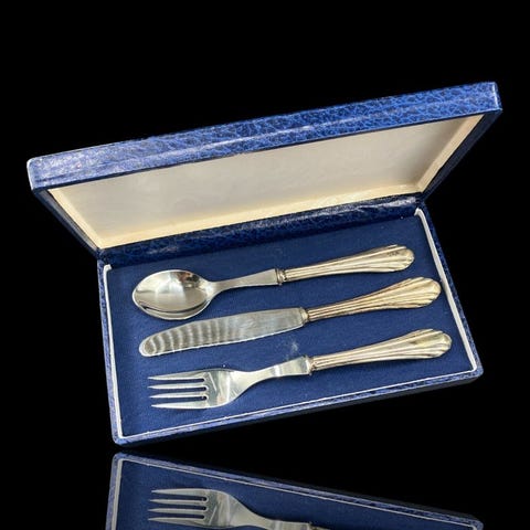 Aterinsarja – Hopea – Vintage-aterinsarja alkuperäisessä laatikossaanVain kahvat ovat hopeassa.Portugali - 1940-1950