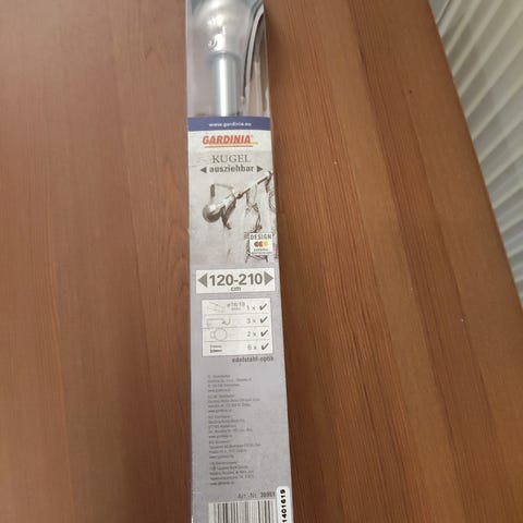 Kullanvärinen, metallinen verhotanko 1980-luvulta. Leveys säädettävissä välille 115 - 230 cm. Mukana seinäkiinnikkeet ja halutessa erikseen mukaan 20 kpl messinkisiä nipsuja. Tangon päihin painettavissa muovitulpissa vähäistä käytön jälkeä, muuten pitkään käyttämättömänä ollut tanko on erinomaisessa kunnossa.