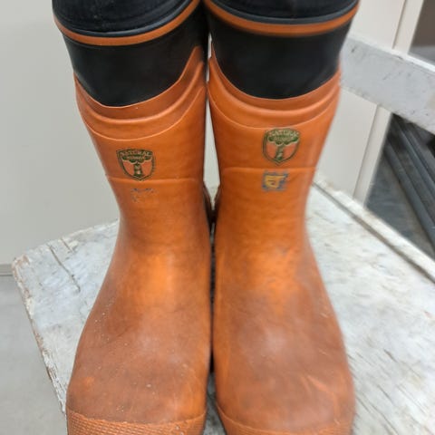 Hyvässä kunnossa olevat käytetyt metsurin nahkaturvakengät. Malli taisi olla Functional 24. Tukevat kengät epätasaiseenkin maastoon. Koko 45.