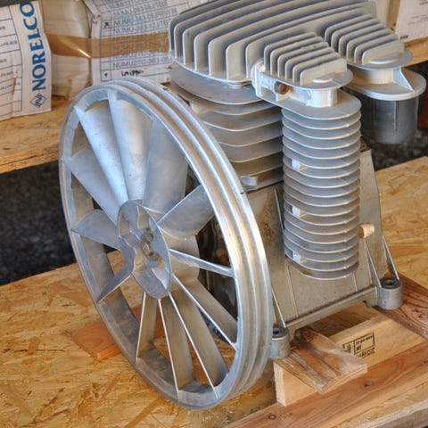 Dari -ilmakompressori, punainen, pyörillä varustettu, teollisuuskäyttöön soveltuva laite.