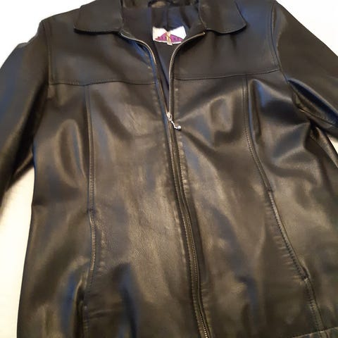 Laadukas naisten nahkatakki, jossa vetoketju- ja nepparikiinnitys. Aitoa pehmeää nahkaa ja nupukkinahalla tehdyt koristelut. Kevyet olkatoppaukset. Malli kevyesti A-linjainen. Taskut sivuissa ja yksi sisällä. Tyylikäs malli. Huollettu nahkavoiteella. Kokolapussa lukee 42, mutta sopii mainiosti myös 44-kokoon. Tervetuloa myös sovittamaan Kupittaan tuntumaan!