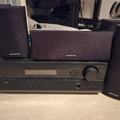 Pioneer-viritinvahvistin + Harmankardonin viisi kaiutinta sekä subwoofer
