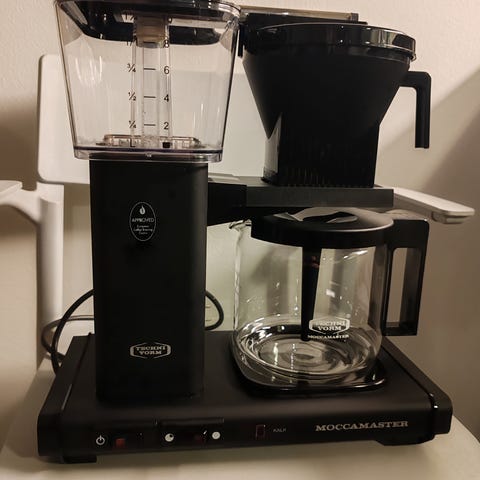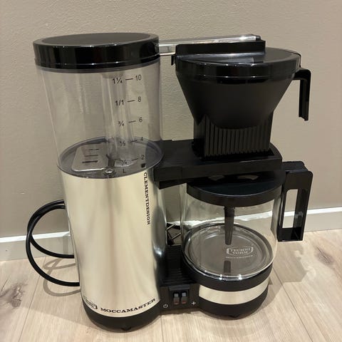 Moccamasterin tyylikäs CD kahvinkeitin. Kaunis hiilen väri, jossa ei näy sormenjäljet. Lasinen kahvipannu. Kaikki osat ehjiä ja siistejä, ollut käytössä yhden hengen taloudessa.