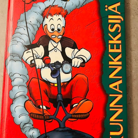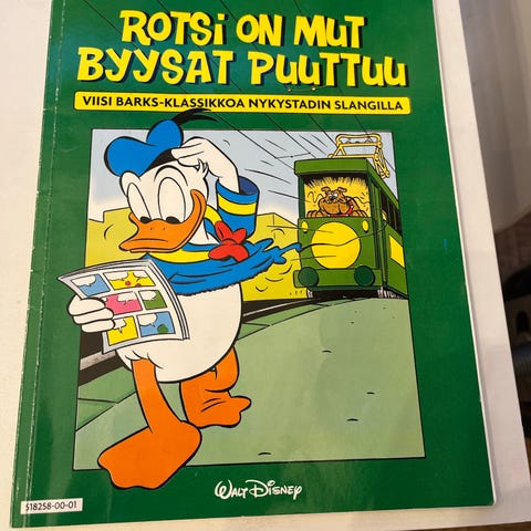 Vuoden 1979 suurikokoinen sarjakuvakirja, josta on mukavaa lukea Barksin klassikkoja. Kunto tyydyttävä, 172 s. Sisäsivut muuten ok, paitsi kolmessa kohtaa on muutaman sivun alalaidassa tahroja. Aika on myös kellastuttanut selkämystä ja kolhinut sen päitä. Etukannen laidoissa pientä kulumajälkeä. Myyn, koska haluan eroon kaikista kirjahyllyjeni Aku-sarjakuvista. Vain käteiskauppa, 13 €. Voin tuoda kirjan noudettavaksi näihin paikkoihin: Päärautatieasema, Pasilan asema/Tripla, Malmin asema.
