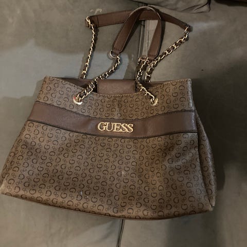 Uusi Guess naisten laukku valmistettu tekonahasta. Laukussa on vetoketjutasku takana ja sisäpuolella useita lokeroita. Väri on ruskea, jossa Guessin logo- ja kuvioprintti. Laukku sopii arki- ja vapaa-ajan käyttöön. Mukaan tulee dustbag.